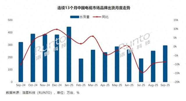 [环球网科技综合报道]10月12日消息,洛图科技最新发布的数据显示全电配资,2025年9月,中国电视市场品牌整机出货量为292.0万台,较去年同期下降8.5%,环比8月上涨17.3%。